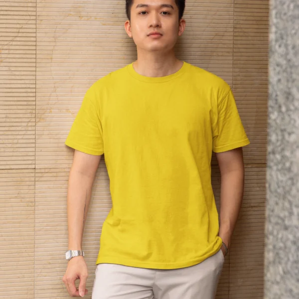 MOZIGO 100% Pure Cotton Classic Fit Solid Half T-Shirt for Men – Yellow, S