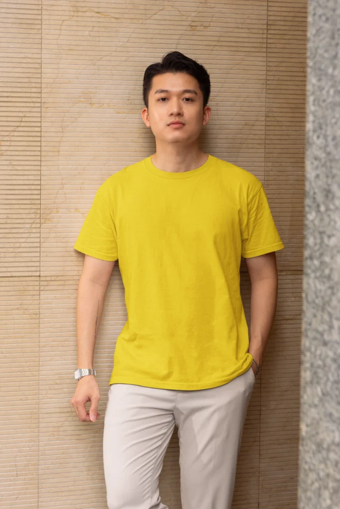 MOZIGO 100% Pure Cotton Classic Fit Solid Half T-Shirt for Men – Yellow, M