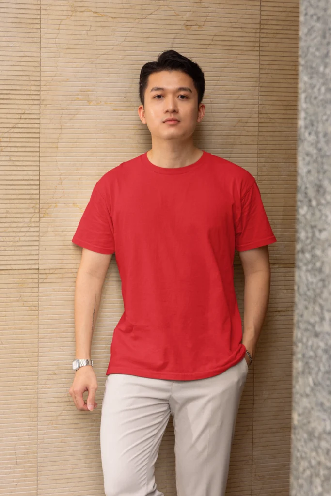 MOZIGO 100% Pure Cotton Classic Fit Solid Half T-Shirt for Men – Red, XL