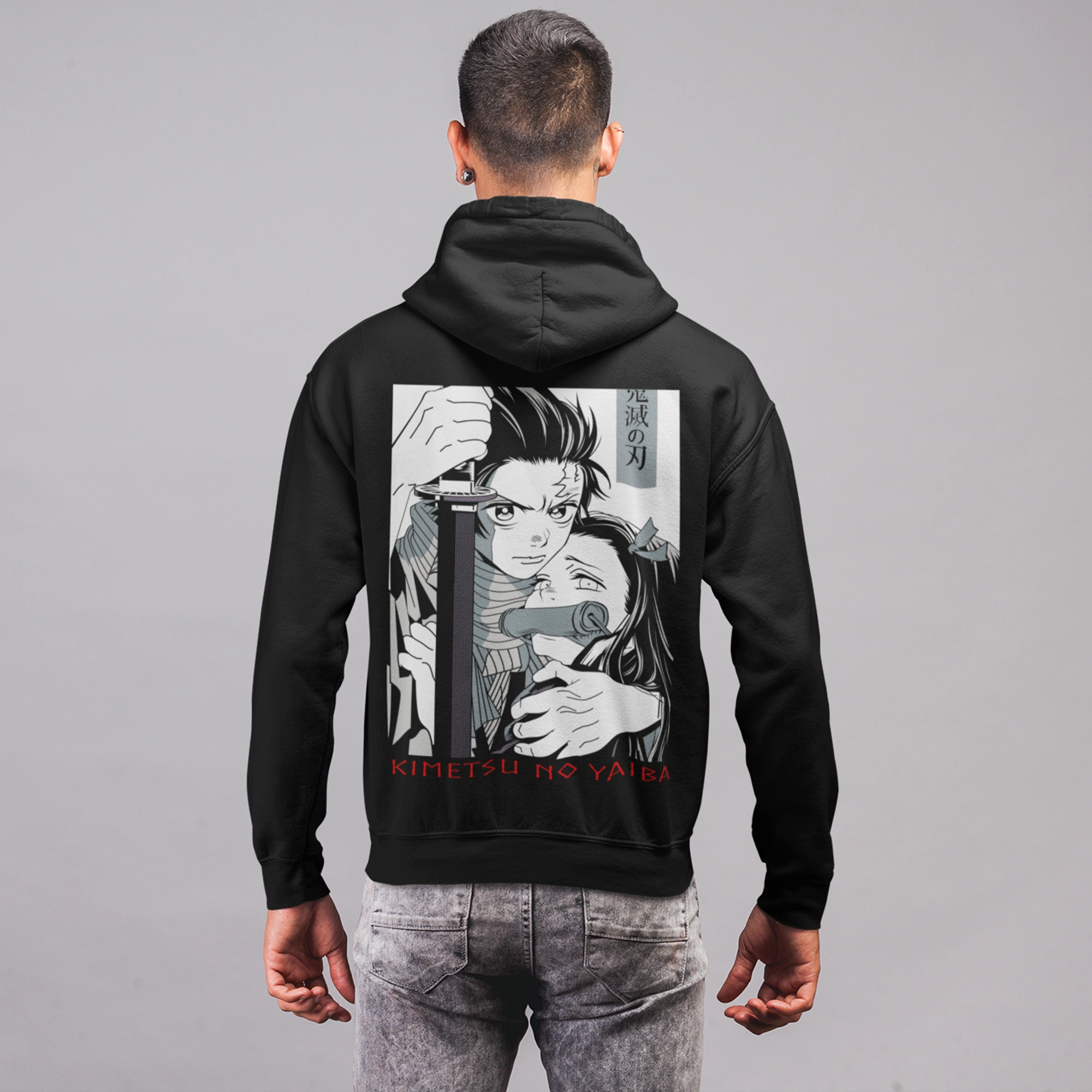 MOZIGO Men’s DEMON SLAYER-09 Graphic Printed Draw Hood, Kangaroo Pocket, Ribbed Hem Regular Fit (Black)