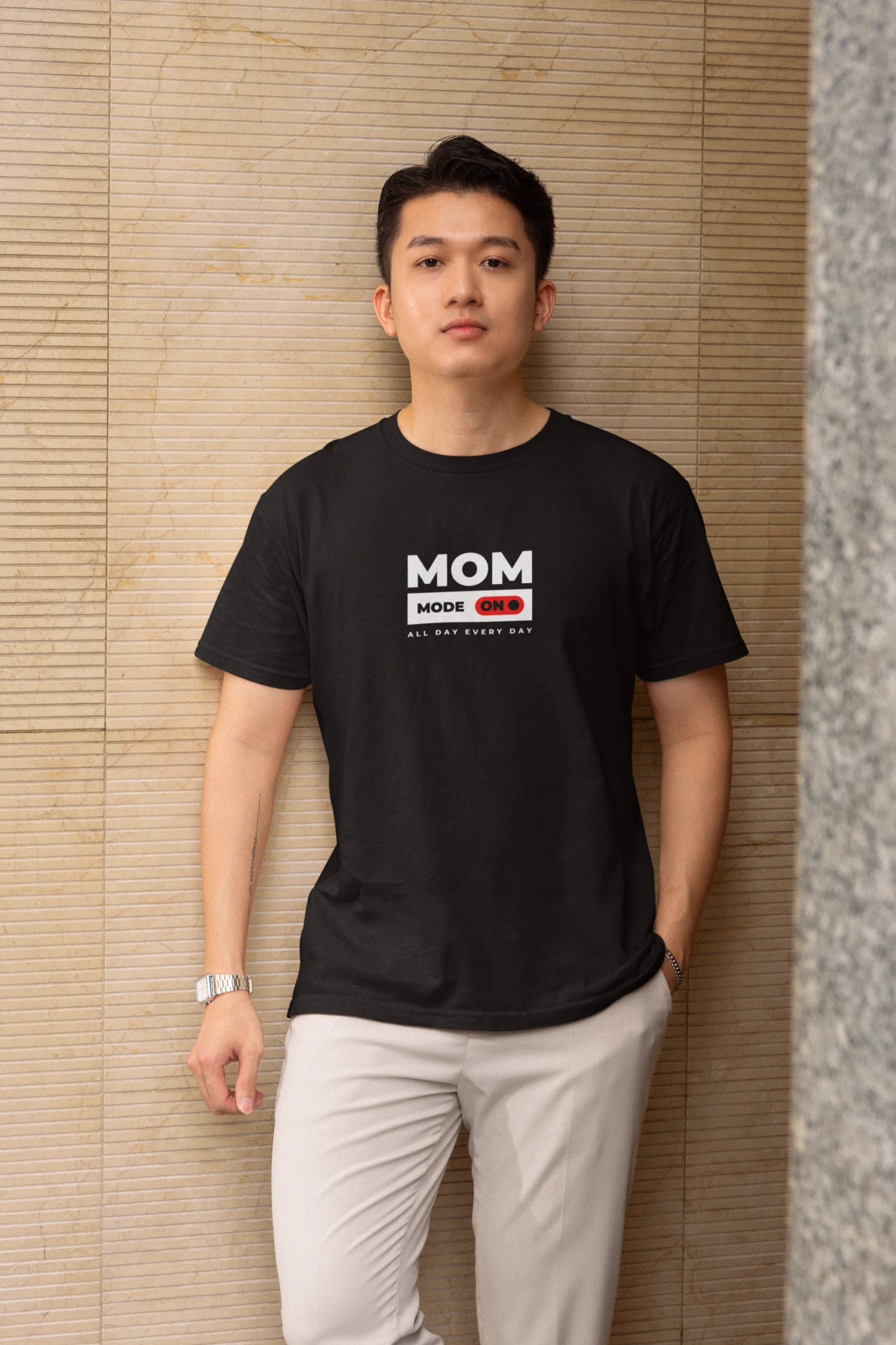 Be the first to review “MOZIGO Pure Cotton Classic Fit Half MOM MODE ON Graphic Printed T-Shirt for Men”